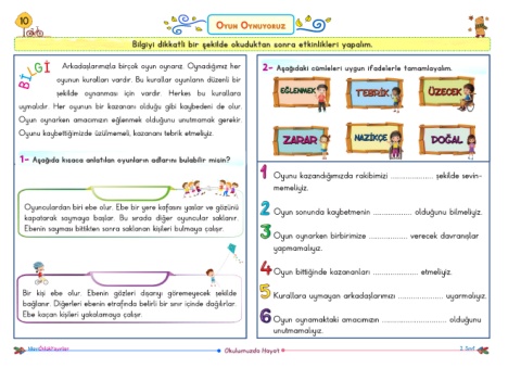 Arkadaşlarımızla birçok oyun oynarız. Oynadığımız her Aşağıdaki cümleleri uygun ifadelerle tamamlayalım.