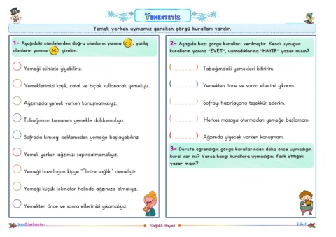 Yemeği elimizle yiyebiliriz. ( …………… ) Tabağımdaki yemekleri bitiririm.