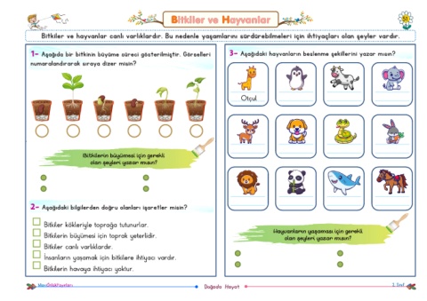 Bitkiler ve hayvanlar canlı varlıklardır. Bu nedenle yaşamlarını sürdürebilmeleri için ihtiyaçları olan şeyler vardır.